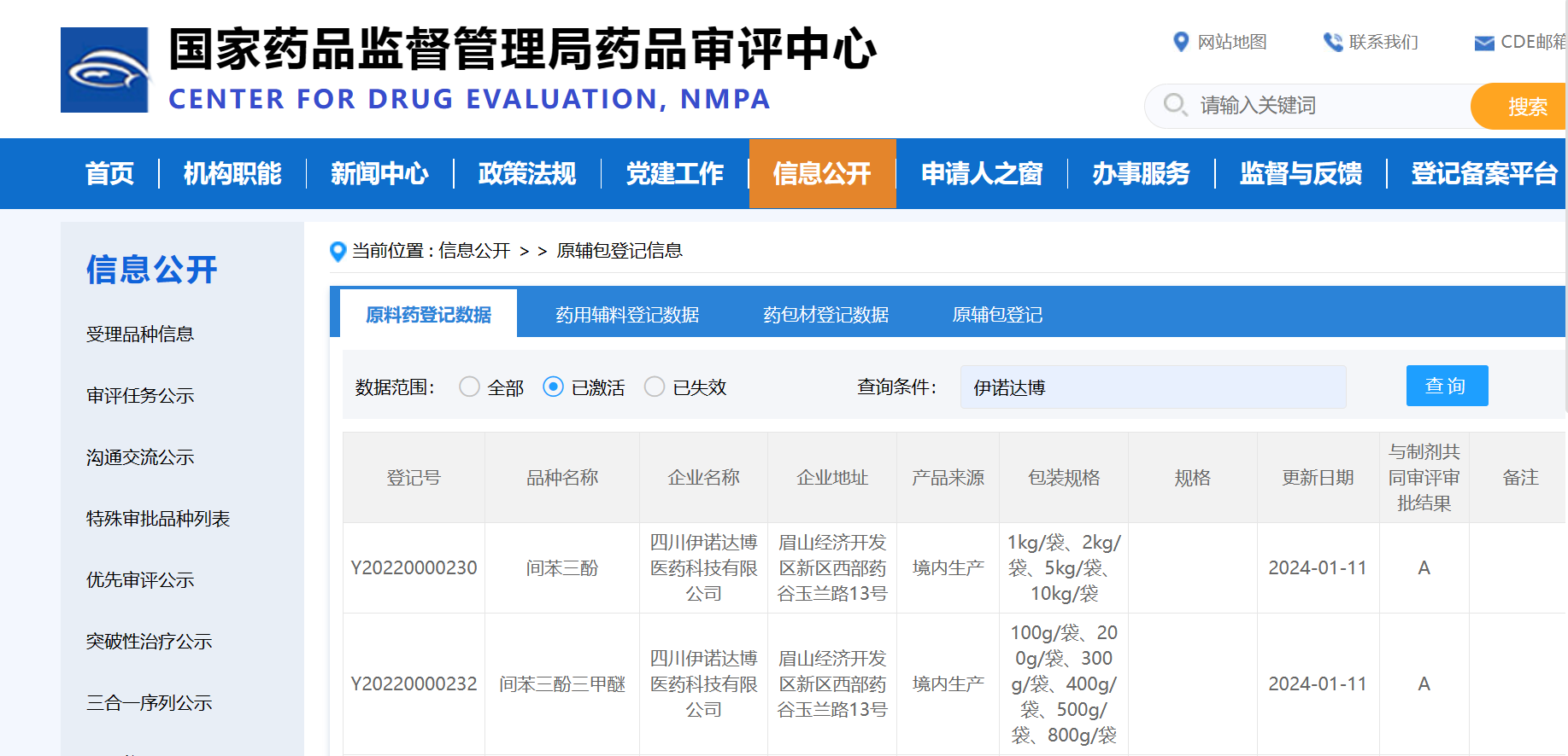 新年開(kāi)門(mén)紅!! 2024年1月11日,國(guó)家藥品監(jiān)督管理局藥品審評(píng)中心(CDE)登記我司產(chǎn)品間苯三酚/間苯三酚三甲醚為A狀態(tài)??!
